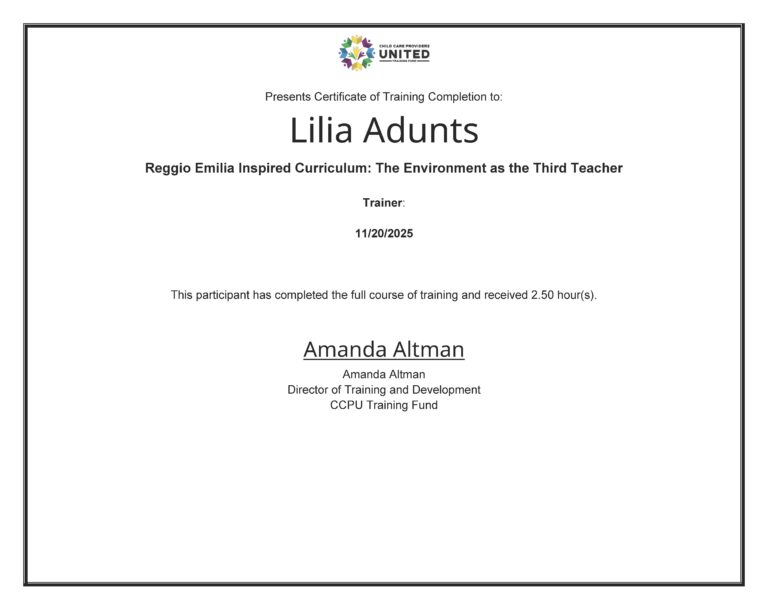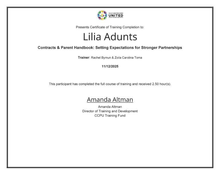 We take pride in our dedication to continuous learning and professional development. Below are the certificates we’ve earned through hard work, commitment, and passion for providing the best care and education for your children. Each certificate represents a step forward in our journey to ensure a safe, fun, and enriching environment for your little ones.